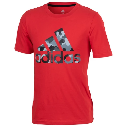 The adidas Camo BOS Tee features a screen printed adidas badge of sport with seasonal core camo print fill on center front.